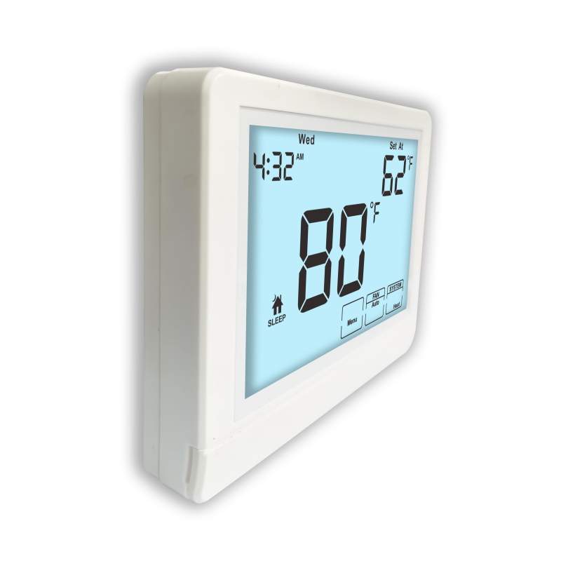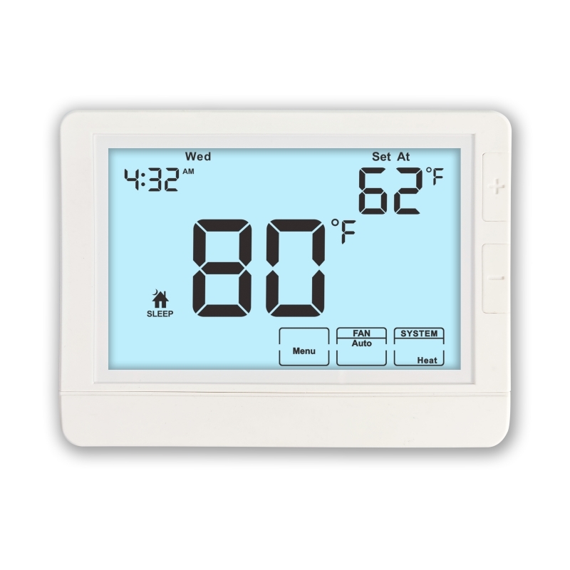 A tela do termostato é outra característica chave que melhora a interação do usuário.A grande área de exibição garante que as configurações de temperatura e as informações de programação sejam visíveis de uma só vezAlém disso, a funcionalidade de iluminação de fundo suporta várias opções de cores: branco, azul, azul, azul, azul, azul, azul, azul, azul, azul, azul, azul, azul, azul, azul, azul e azul.e verde, permitindo aos utilizadores escolher a iluminação mais confortável e visualmente atraente para o seu ambienteIsto é especialmente vantajoso em salas ou instalações pouco iluminadas, onde as condições de iluminação variam ao longo do dia.